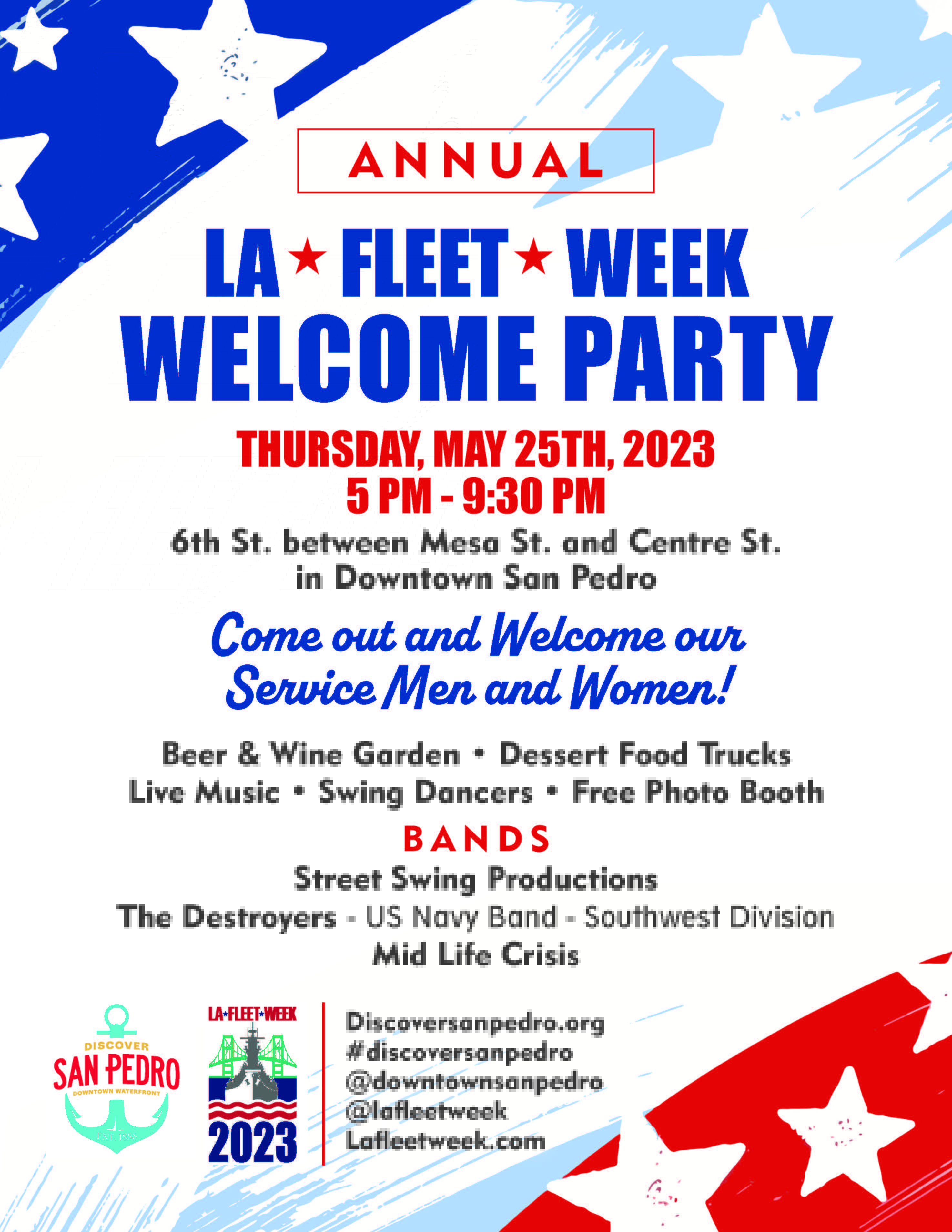 May 25, 2023 @ 6:00 pm - 10:00 pm Downtown San Pedro Welcome Party Downtown San Pedro Downtown San Pedro Welcome Party Free